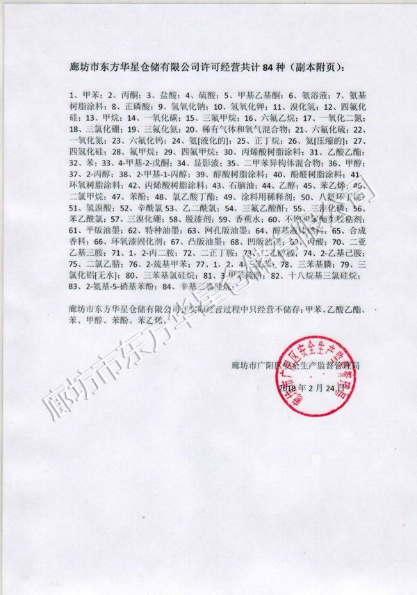 廊坊市东方华星仓储有限公司成立于2002q?1月,占地100亩,l廊坊市工商局注册l河北省对外贸易局批准成立的外贸型企业。可以代理国内各生厂商出口其品ƈ提供相应涉外贸易服务。通过全体员工的共同努力公司在短短的几q里不断发展壮大h。我公司有危险品库房15000q米Q各U型号叉?収ͼ24时提供装卸车服务。ؓ(f)加强安全理公司每月召开安全例会(x)。针对运输、保、装卸、营销{岗位加强岗位安全教Ԍ场区实行24时监控QR辆安装GPS卫星定位pȝQ每天由专h对记录进行整理归档?/span>